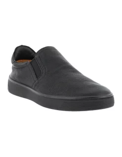ECCO Street Tray Mens Slip-On With the ECCO STREET TRAY slip-on, we have taken the classic tan gum sole and paired it with a soft collapsible leather upper to make it the ideal easy-on, easy-off shoe that naturally moves with you. Smooth, premium leather crafted by ECCO Elasticated sides for easy on and off movement Innovative collapsible shoe design for easy transport. Combined soft leather and textile lining.